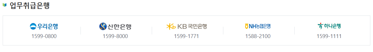 - 국민은행, 신한은행, 우리은행, 하나은행 등 1금융권