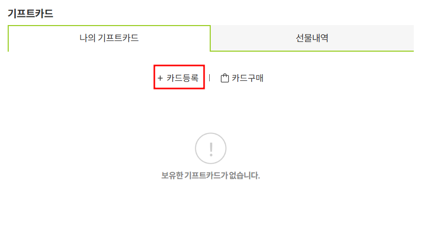 - ‘기프트카드 등록’ 버튼을 클릭합니다.