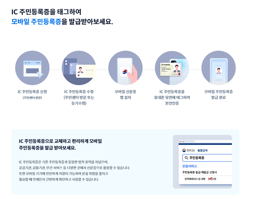 - IC 주민등록증을 스마트폰 뒷면에 태그 하여 본인 인증