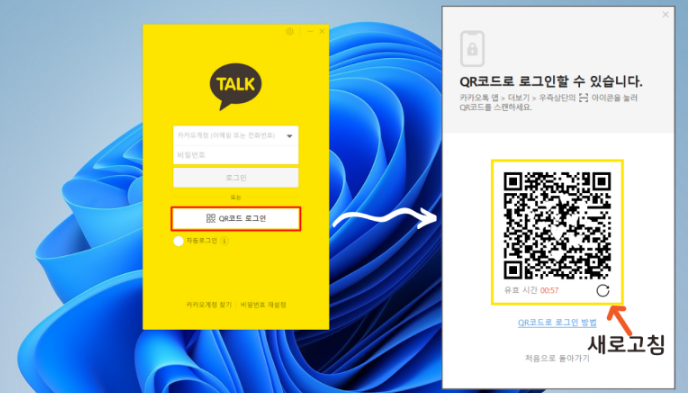 PC에서 카카오톡을 처음 실행하면 로그인 과정이 필요합니다.