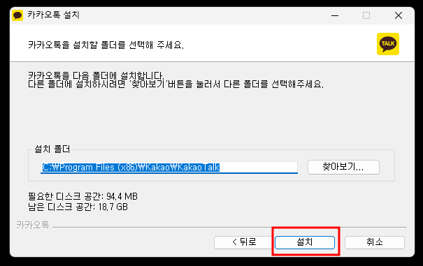 - 설치 완료 후 ‘카카오톡 실행’ 클릭